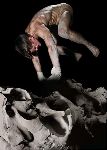 In this performance piece, the audience is placed in a completely dark room while Cassils ferociously pummels a two thousand pound block of clay. The room is only lit up in fleeting moments by the flash of a photographer, burning the image of Cassils’ violent display onto their retinas. This performance encapsulates the explosive and destructive nature of plasticity, with the sudden and aggressive punches into the clay by Cassils slowly sculpting it. A destructive counterpart is fundamental in all of creation, we all experience cellular annihilation. We would not have fingers if a separation between them did not form.[xi] We can imagine each of Cassils’ punches to be the instances of destruction and the clay as our brain adapting and taking a new form. This imposition of new form over the old occurs without mediation, sometimes unnoticed, just as the viewer in this performance struggles to see what is taking place. The performance is multiplicitous in the way it displays the process of transformation, while also triggering a process of transformation within the viewer.